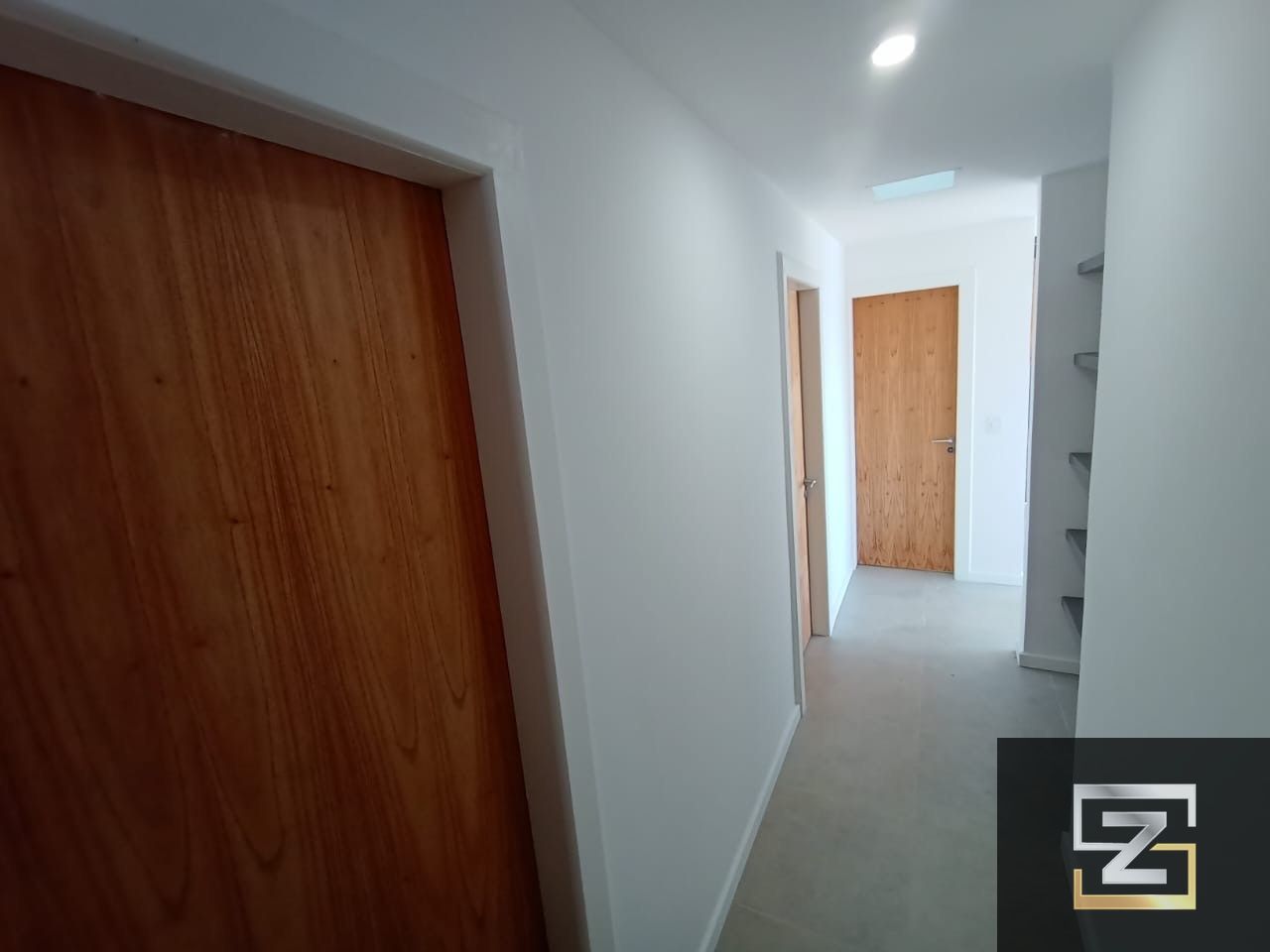 – Amplia puerta de entrada pivotante hecha con tablero de madera maciza de guayubira. Cerradura inteligente biométrica; apertura con huella, llave, tarjeta o clave numérica.