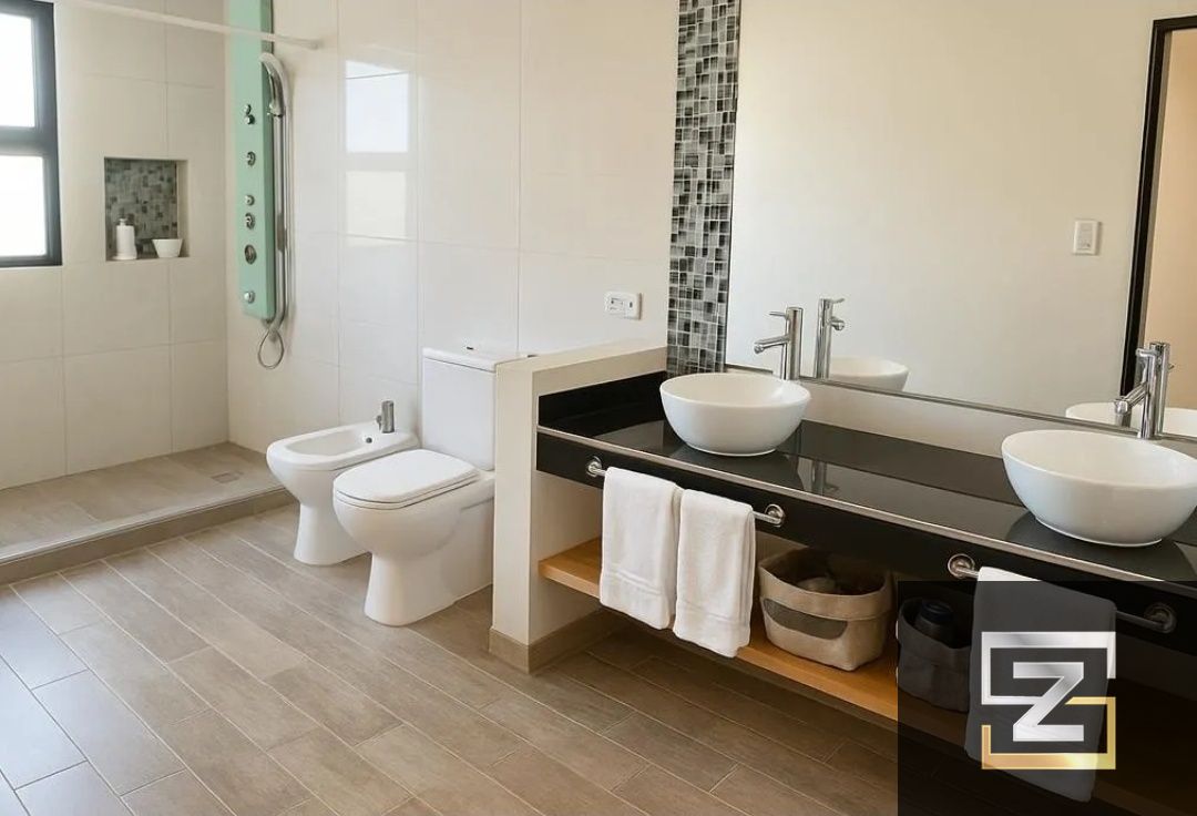 La planta alta alberga una suite principal con vestidor y baño completo, tres dormitorios amplios con placard y un baño compartido, más un ambiente versátil que puede utilizarse como estar, escritorio o playroom.