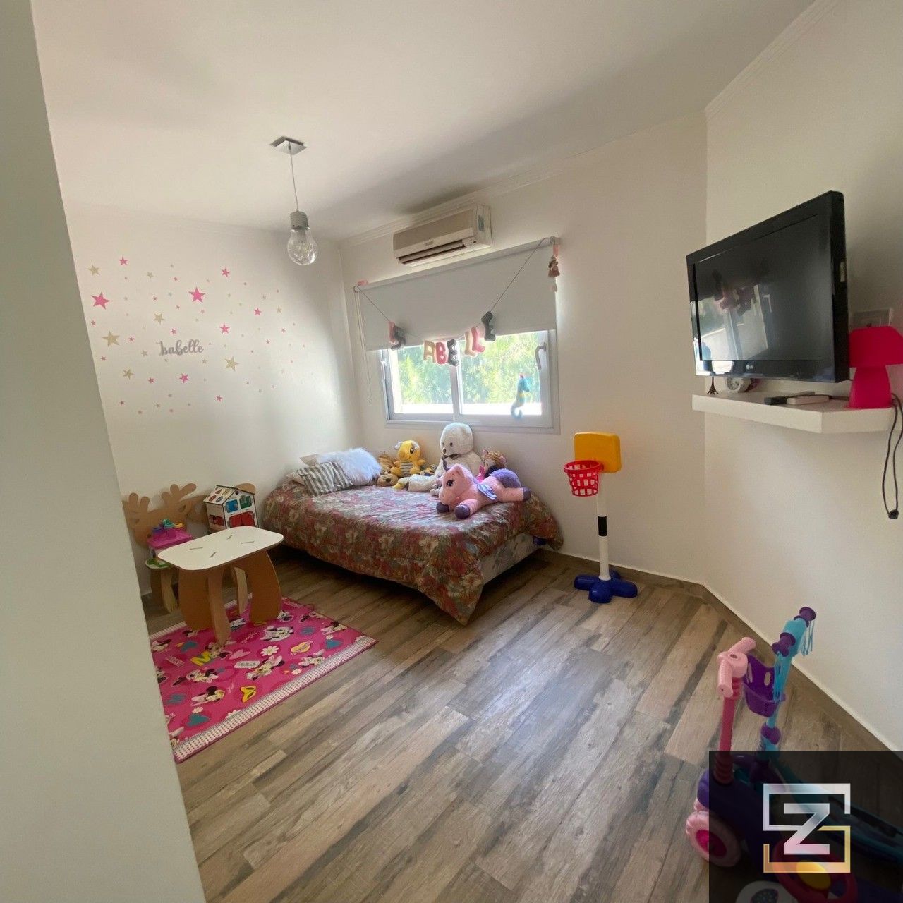 En planta baja encontramos un amplio ambiente de sala de estar- comedor con excelente rack integrado con luces leds y ventanales al jardín, cocina integrada. Dispone de toilette de recepción, lavadero y escritorio o lugar de guardado. Cochera cubierta con portón elevadizo para 2 autos y espacio para incorporar un dormitorio extra.